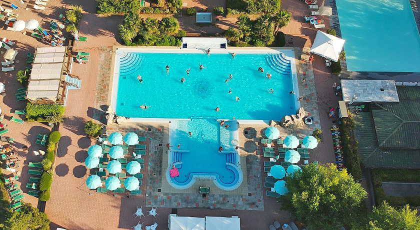 FAMIGLIE CON BAMBINI: Ampia spiaggia di sabbia, due piscine, una dedicata ai più piccoli con sdraio e lettini appositamente preparati per i bimbi. Diversi parchi gioco attrezzati ed un grande parco per passeggiate e giri in bicicletta.