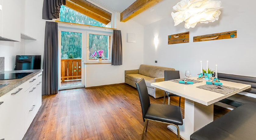 Il Residence nuovo, piccolo e particolare è situato in Val Gardena tra Ortisei e S. Cristina, punto di partenza ideale per gite ed escursioni, in posizione tranquilla e soleggiata, il bosco alle spalle e una splendida vista sul Sassolungo. Dispone di giardino con sdraie e ampio parcheggio; a due passi la storica passeggiata del trenino che collega le tre località della valle, la fermata di autobus e skibus gratuiti. I cinque appartamenti tutti con il balcone e serviti da ascensore, sono curati nei minimi dettagli e dotati di ogni comfort, il giardino d'inverno e una saletta a disposizione degli ospiti. Il residence dispone di un deposito sci riscaldato con asciuga scarponi. La particolarità degli appartamenti in Val Gardena sta nella possibilità di venire incontro a bisogni ed esigenze diversificate prenotando: appartamenti con servizio di pane fresco, appartamenti con servizio di prima colazione nel giardino d'inverno.